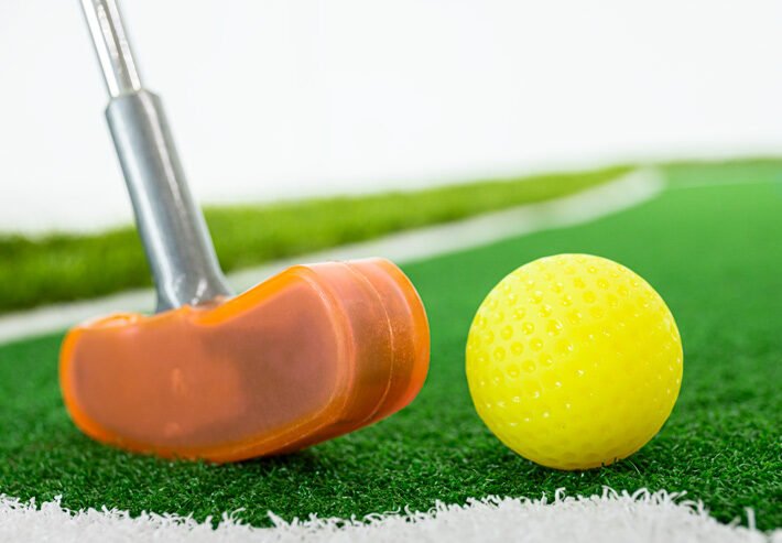 Inclusief; 10x midgetgolf sticks & 20 golfballen.